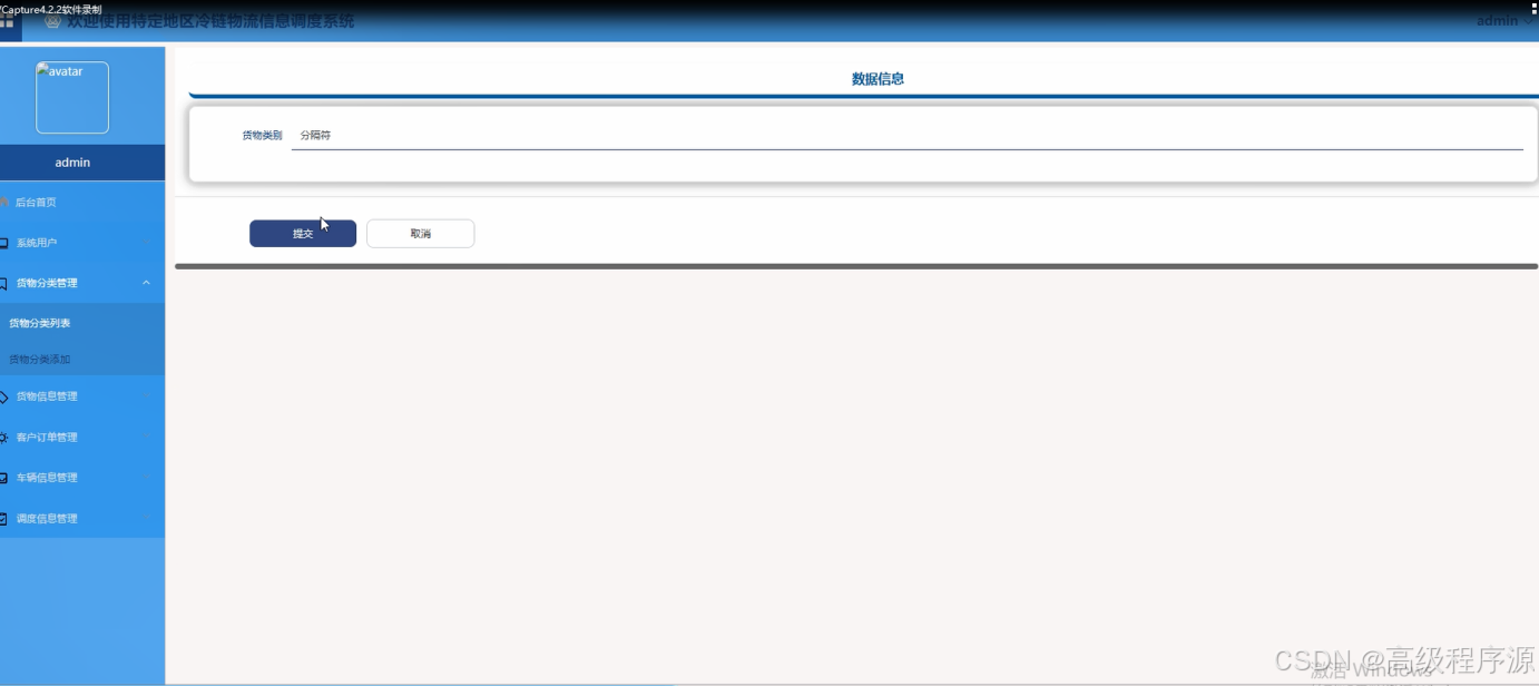 允许管理员管理货物的分类信息,包括添加新分类、编辑分类信息、删除分类等操作,以便更好地组织和管理货物资源。如下图所示。