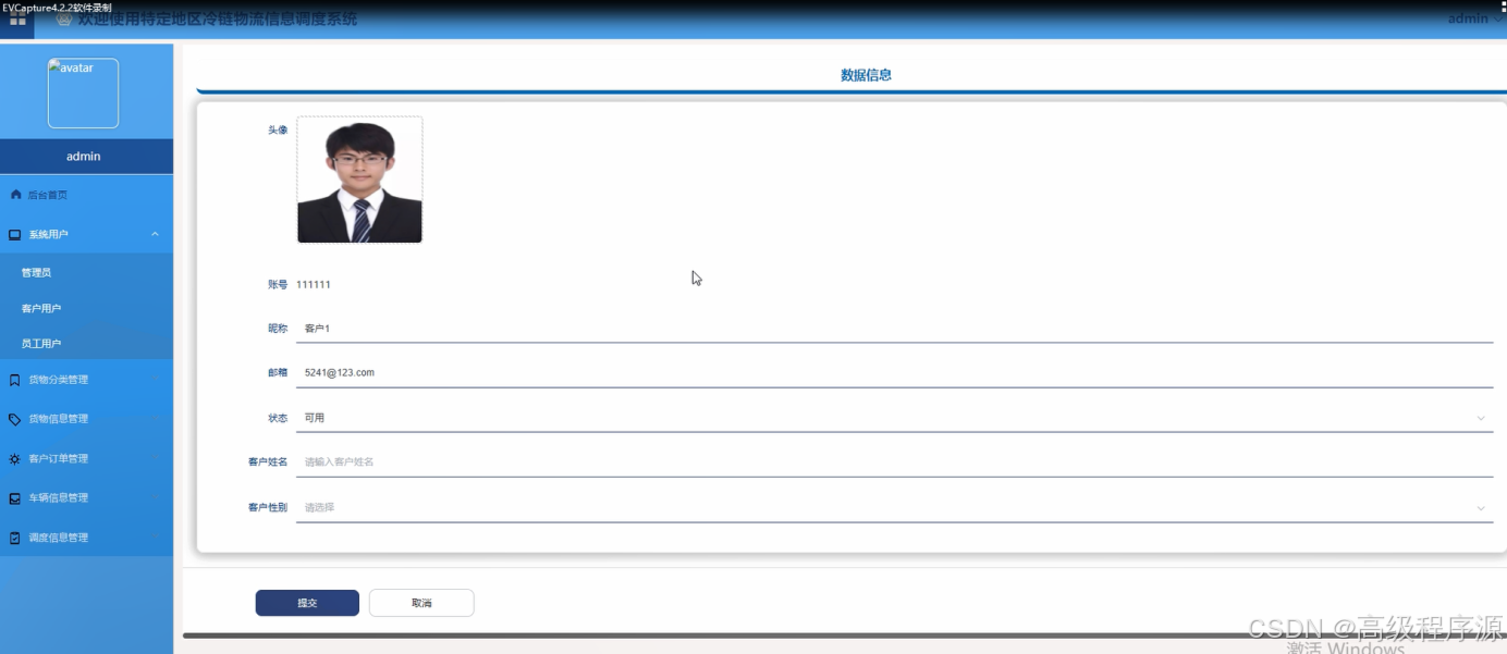 后台首页:展示客户用户的个人信息和相关操作入口,方便客户用户快速进行管理和监控。