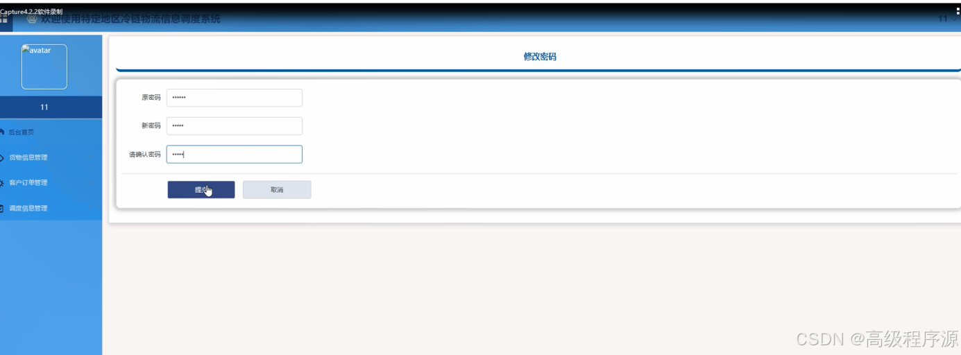 1)管理员密码修改并完成填写。 2)点击进行提交。 |