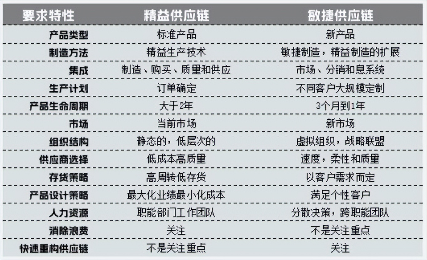 不同之处在于,精益生产通过消除对过程或服务不增值的任何东西,缩短产品交货期。敏捷制造需要一个快速响应的供应链,通过信息流和物料流来缩短交货期。