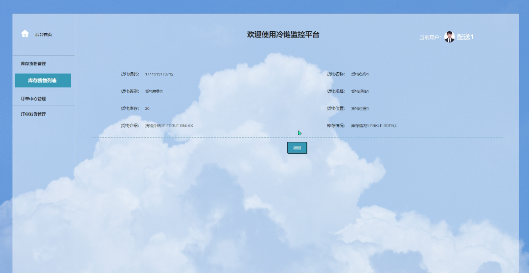 关键词:冷链监控平台;SpringBoot;Java;库存物流管理