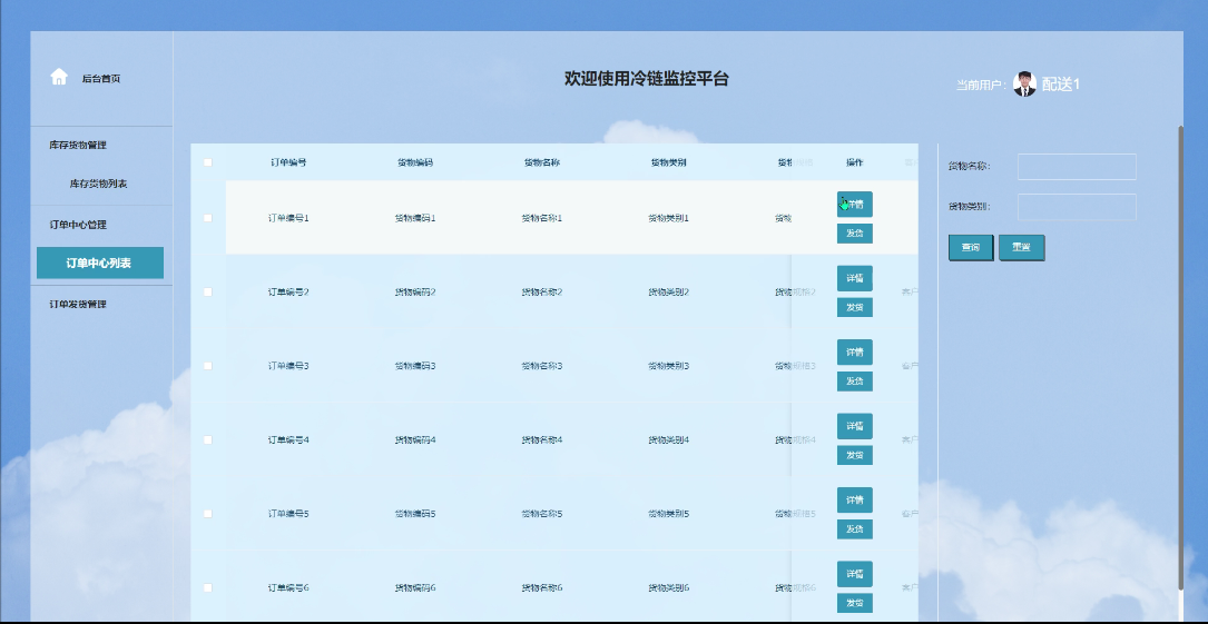 库存货物管理:配送用户可搜索和浏览库存货物信息,查看库存货物的详细内容。