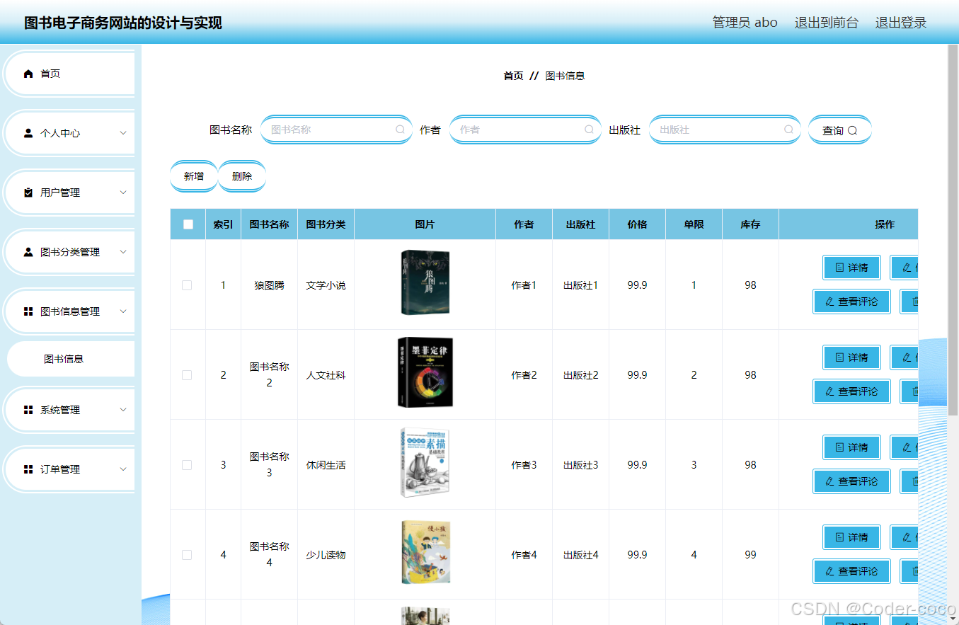 社会发展日新月异,用计算机应用实现数据管理功能已经算是很完善的了,但是随着移动互联网的到来,处理信息不再受制于地理位置的限制,处理信息及时高效,备受人们的喜爱。本次开发一套图书电子商务网站,实现管理员可以管理用户,图书信息,可以对订单发货。用户可以查看管理员发布的图书,可以对图书购买下单。。图书电子商务网站服务端用Java开发,用Spring Boot框架开发的网站后台,数据库用到了MySQL数据库作为数据的存储。这样就让用户用着方便快捷,都通过同一个后台进行业务处理,而后台又可以根据并发量做好部署,用硬件和软件进行协作,满足于数据的交互式处理,让用户的数据存储更安全,得到数据更方便。