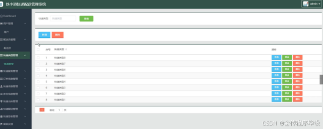 图5-10快递类型管理界面