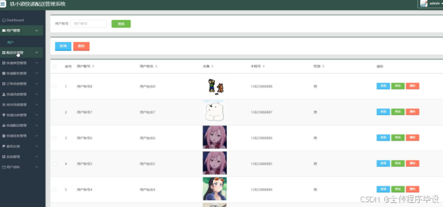 配送员管理:实现配送员信息的录入、更新、删除,以及配送员任务分配与状态跟踪。
