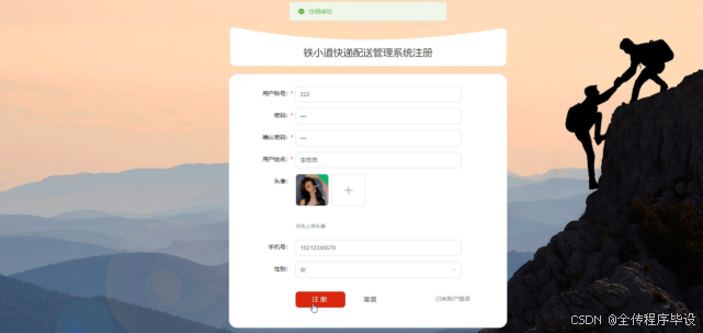 以下是用户注册代码: