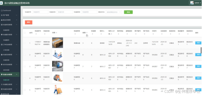 图5-13快递信息管理界面
