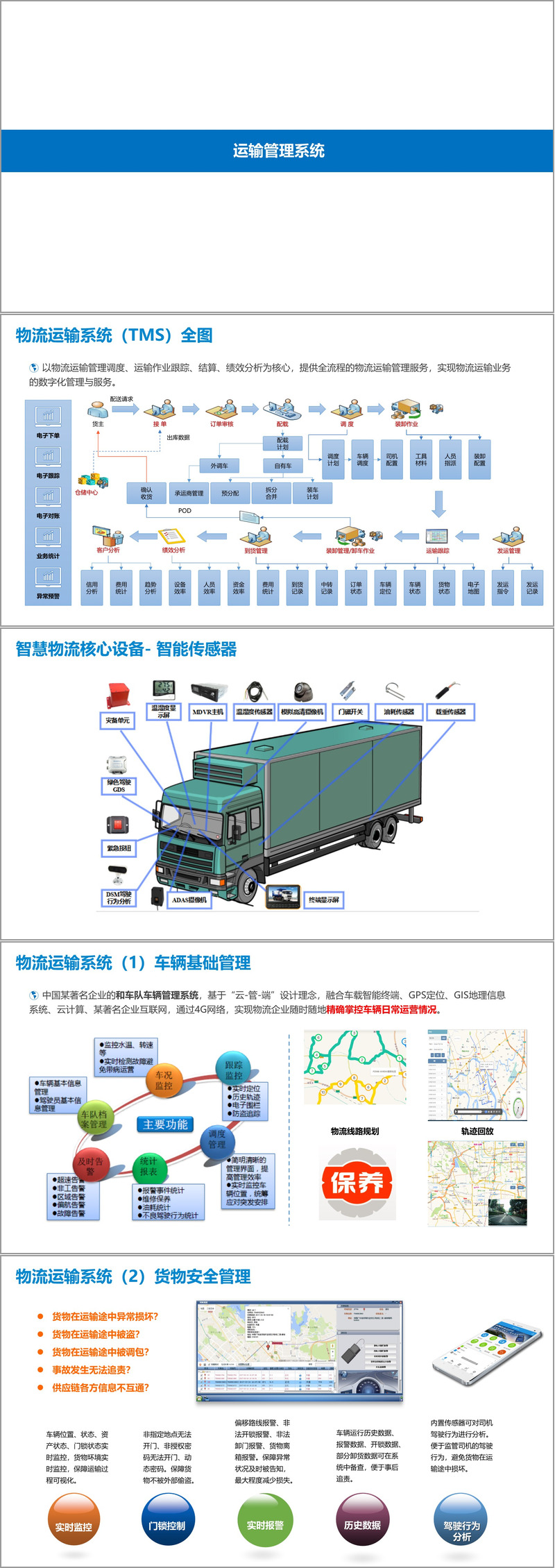 - 实现从订单审核、调度配载到运输跟踪的全流程数字化管理,支持电子地图定位、异常预警、绩效分析等功能。