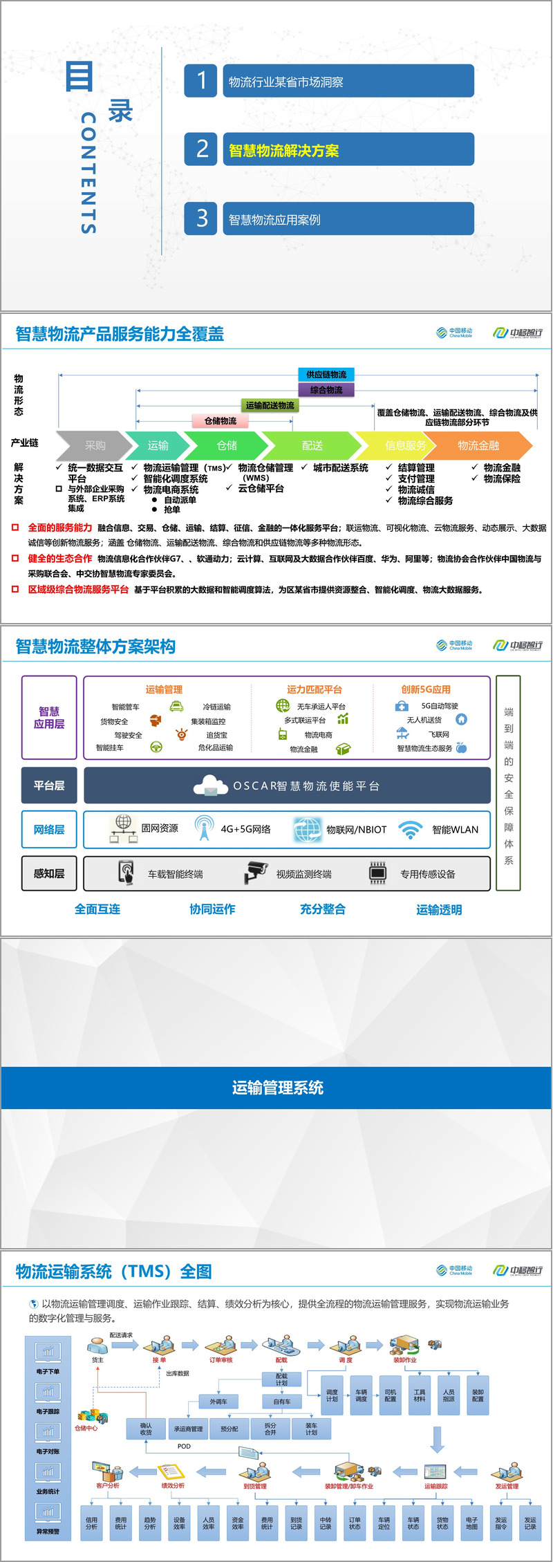 中国某著名企业近期发布了一份详尽的物流信息化解决方案,全面展示了其在物流运输领域的创新技术与服务能力。这份资料系统性地呈现了从市场洞察到解决方案再到应用案例的完整框架,充分体现了该企业在智慧物流领域的战略布局和技术实力。