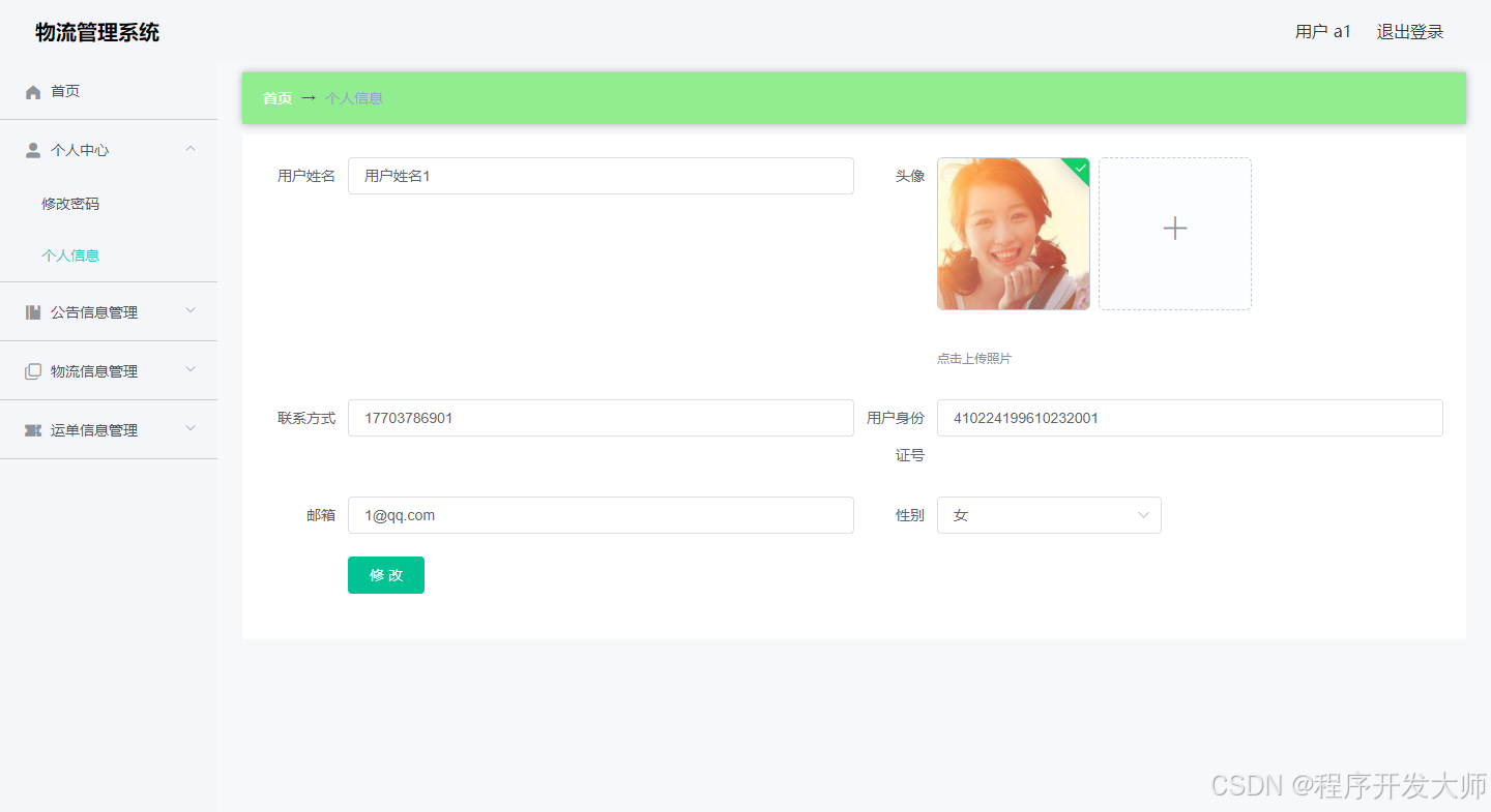 用户可以在个人信息里面修改自己的资料。