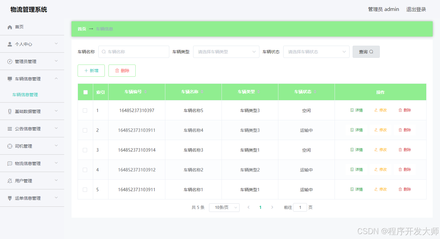图5-3 物流信息管理页面