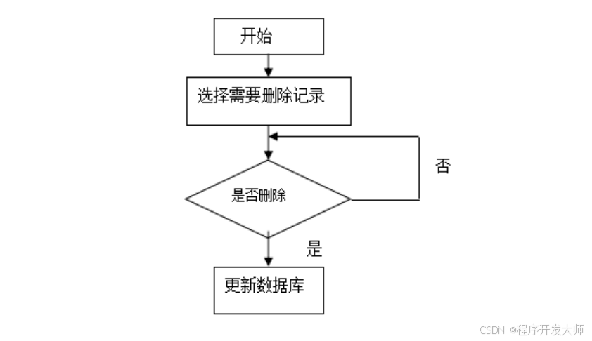 程序数据存放于数据仓库,有时也会涉及到数据删除,此过程对应的流程图见下图。数据信息被删除之后,数据库里面也就没有了该数据信息了。