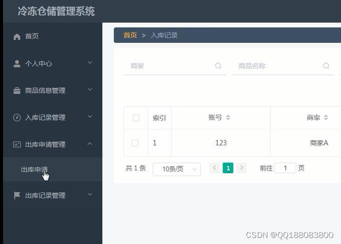 本冷冻仓储管理系统主要包括登录管理员模块如下:首页、个人中心、商户管理、商品信息管理、商品分类管理、入库记录管理、出库申请管理、出库记录管理、管理员管理等。商户模块:首页、个人中心、商品信息管理、入库记录管理、出库申请管理、出库记录管理等多个模块。