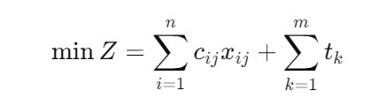 针对不确定的交通条件和导航环境,本文首次将带无人机的旅行商问题构建为一个二阶锥规划(SOCP)模型。其主要目标是最小化总配送时间,目标函数为:
