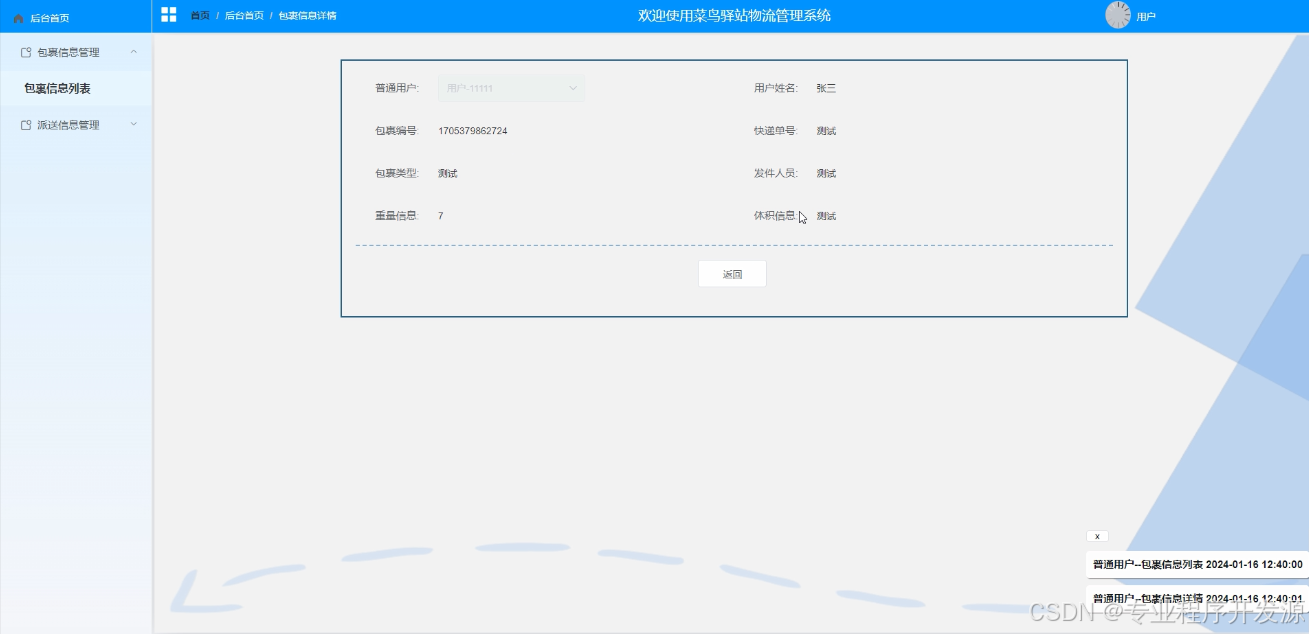 包裹信息管理:用户可以查询包裹信息等操作。