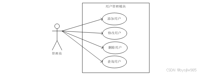 (4)用户管理模块:用户管理是后台管理员独有功能,管理员可以对注册的用户进行修改、删除、查询、也可以添加新的用户。用户管理模块用例如下图2-4所示。