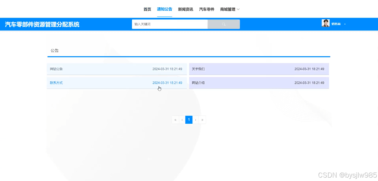 The auto parts resource management and distribution system developed this time is a special platform for selling auto parts online based on the current Internet plus era, so that people can enjoy the service of buying auto parts without going out and waiting for home delivery in a fast-paced living and working environment. This project mainly consists of two parts: the front-end and back-end. The target audience for these two parts is different. The front-end is used by a large number of users who need to purchase automotive parts, while the back-end is used by wholesalers and program administrators. Users can browse products, register and log in, add intended products to shopping carts, pay and purchase a series of activities on the front-end; Merchants can manage the mall in the backend, add new automotive parts products, and process user chat and order information; Administrators can perform operations such as managing users, managing products, managing product categories, and managing orders for front-end users in the backend. The application of this project can enable businesses to keep up with the pace of the times, not be eliminated, and enhance their competitiveness.