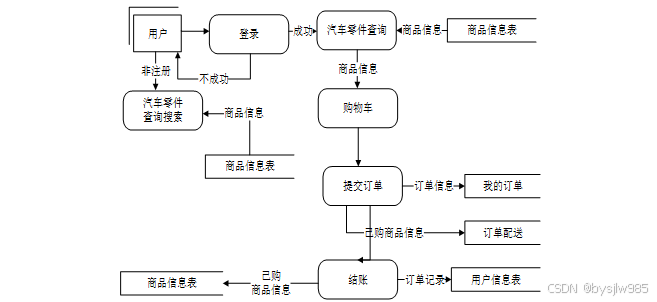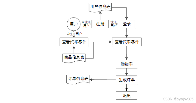 1.进入系统登录界面 2.点击汽车零件,选择某条汽车零件查看详情 3.加入购物车或者立即购买 4.输入订单信息提交订单 |