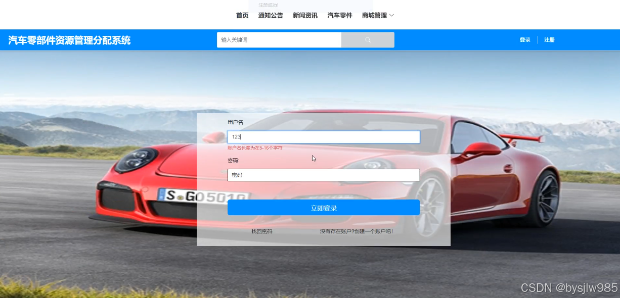 管理员可以通过浏览器进入到汽车零部件资源管理分配系统后台登录界面,输入用户名:admin和密码admin后,点击“登录”按钮。 |