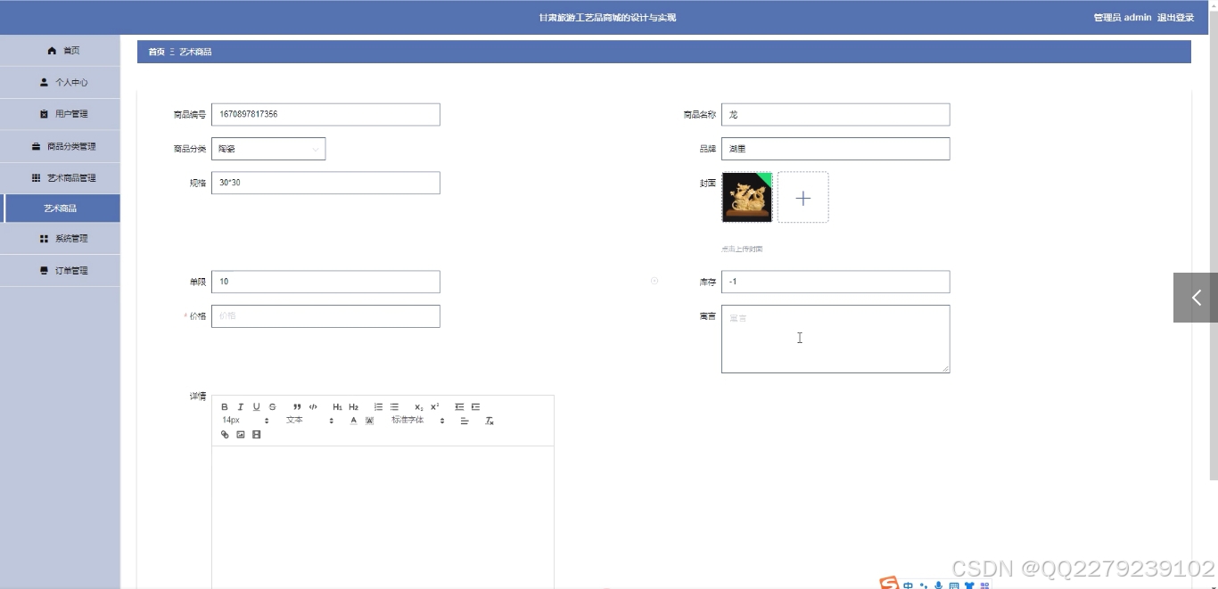 基于Java springboot甘肃旅游工艺品商城系统(源码+文档+运行视频+讲解视频)